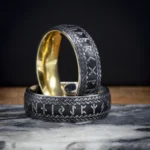 Anneaux majestueux en or et argent orné de runes sacrées. La finition bicolore et les inscriptions évoquent la gloire du Valhalla et la noblesse des guerriers nordiques.